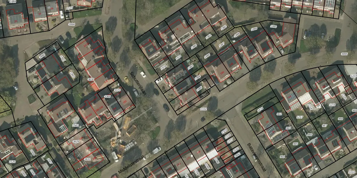 Het perceel waarop Schutterijlaan 4 staat heeft een oppervlakte van 180 m². Dit is een middelgroot perceel. De perceeloppervlakte wordt geregistreerd door het Kadaster. Gedetailleerde informatie over de maten van dit perceel kunt u vinden in het rapport Kadastrale kaart met maatvoering van Schutterijlaan 4.