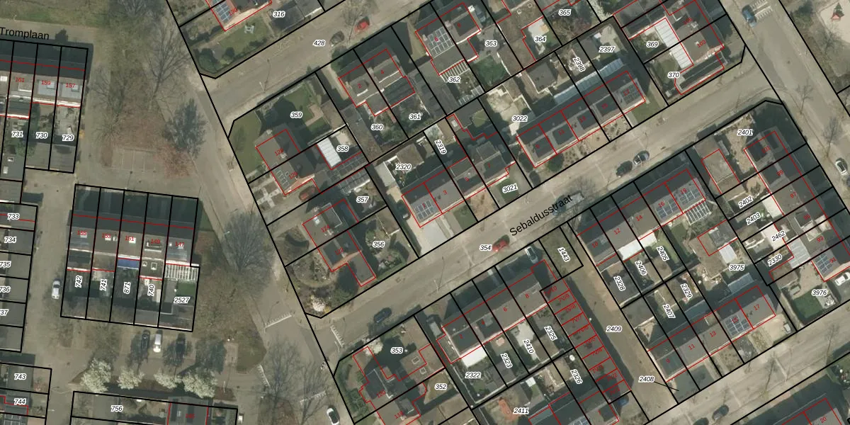 Het perceel waarop Sebaldusstraat 1 staat heeft een oppervlakte van 405 m². Dit is een groot perceel. De perceeloppervlakte wordt geregistreerd door het Kadaster. Gedetailleerde informatie over de maten van dit perceel kunt u vinden in het rapport Kadastrale kaart met maatvoering van Sebaldusstraat 1.