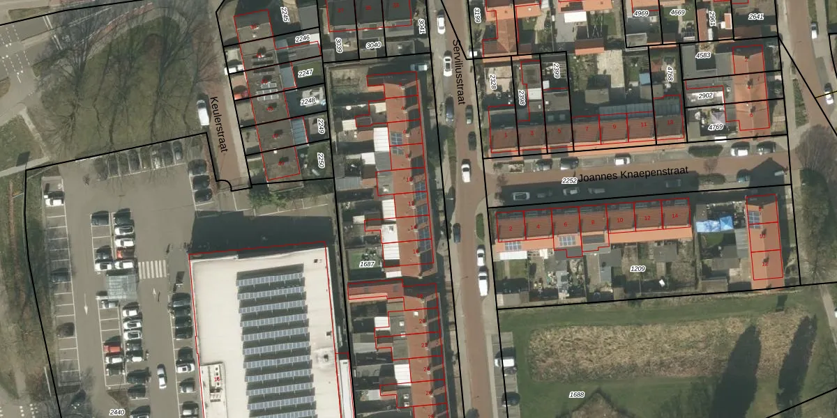 Serviliusstraat 12 is gelegen op kadastraal perceel WEE01R1687. Deze kadastrale aanduiding is uniek en wordt gebruikt door het Kadaster om eigendomsrechten en andere zakelijke rechten vast te leggen. Het perceel maakt onderdeel uit van de kadastrale gemeente Weert.