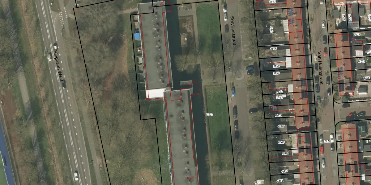 Het perceel waarop Serviliusstraat 158 staat heeft een oppervlakte van 6325 m². Dit is een zeer groot perceel. De perceeloppervlakte wordt geregistreerd door het Kadaster. Gedetailleerde informatie over de maten van dit perceel kunt u vinden in het rapport Kadastrale kaart met maatvoering van Serviliusstraat 158.