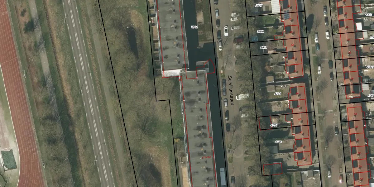 Het perceel waarop Serviliusstraat 200 staat heeft een oppervlakte van 4620 m². Dit is een zeer groot perceel. De perceeloppervlakte wordt geregistreerd door het Kadaster. Gedetailleerde informatie over de maten van dit perceel kunt u vinden in het rapport Kadastrale kaart met maatvoering van Serviliusstraat 200.
