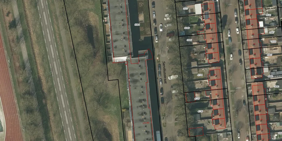 Het perceel waarop Serviliusstraat 202 staat heeft een oppervlakte van 4620 m². Dit is een zeer groot perceel. De perceeloppervlakte wordt geregistreerd door het Kadaster. Gedetailleerde informatie over de maten van dit perceel kunt u vinden in het rapport Kadastrale kaart met maatvoering van Serviliusstraat 202.