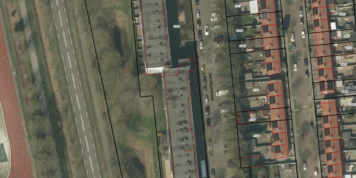 Het perceel waarop Serviliusstraat 204 staat heeft een oppervlakte van 4620 m². Dit is een zeer groot perceel. De perceeloppervlakte wordt geregistreerd door het Kadaster. Gedetailleerde informatie over de maten van dit perceel kunt u vinden in het rapport Kadastrale kaart met maatvoering van Serviliusstraat 204.