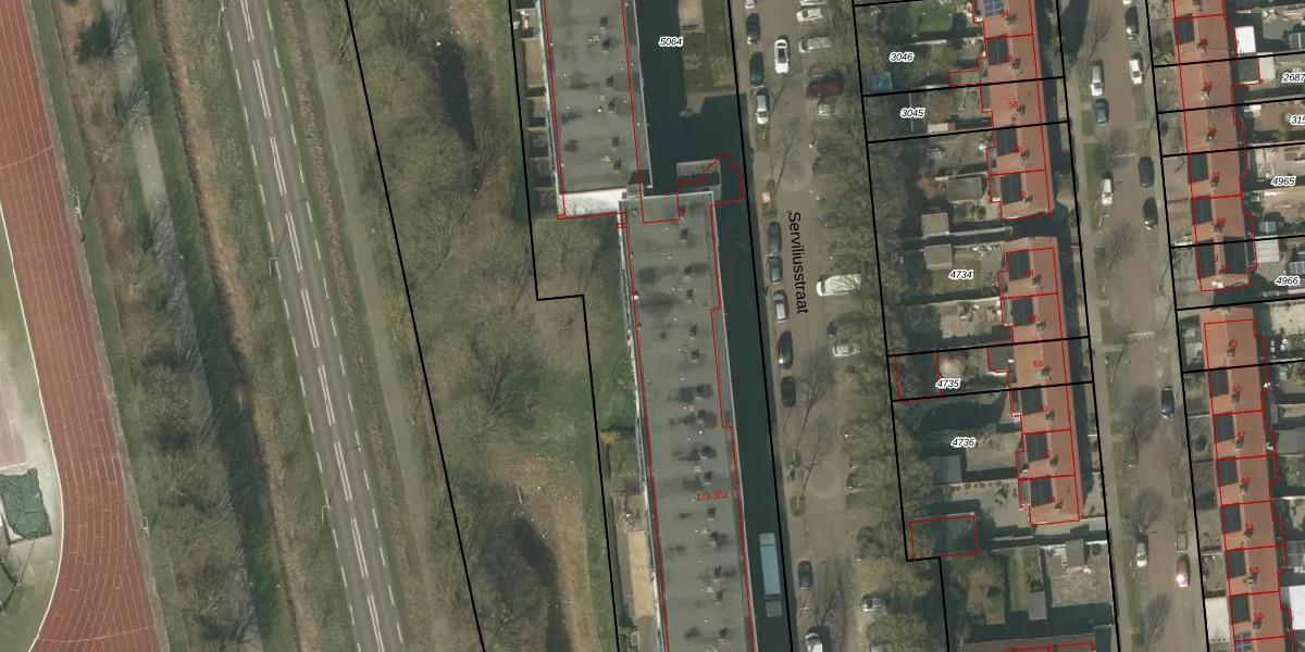 Het perceel waarop Serviliusstraat 216-A staat heeft een oppervlakte van 4620 m². Dit is een zeer groot perceel. De perceeloppervlakte wordt geregistreerd door het Kadaster. Gedetailleerde informatie over de maten van dit perceel kunt u vinden in het rapport Kadastrale kaart met maatvoering van Serviliusstraat 216-A.