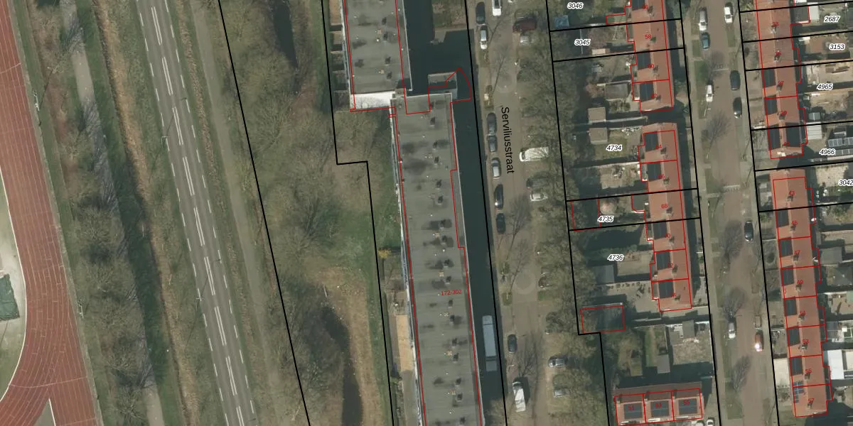 Het perceel waarop Serviliusstraat 228-A staat heeft een oppervlakte van 4620 m². Dit is een zeer groot perceel. De perceeloppervlakte wordt geregistreerd door het Kadaster. Gedetailleerde informatie over de maten van dit perceel kunt u vinden in het rapport Kadastrale kaart met maatvoering van Serviliusstraat 228-A.