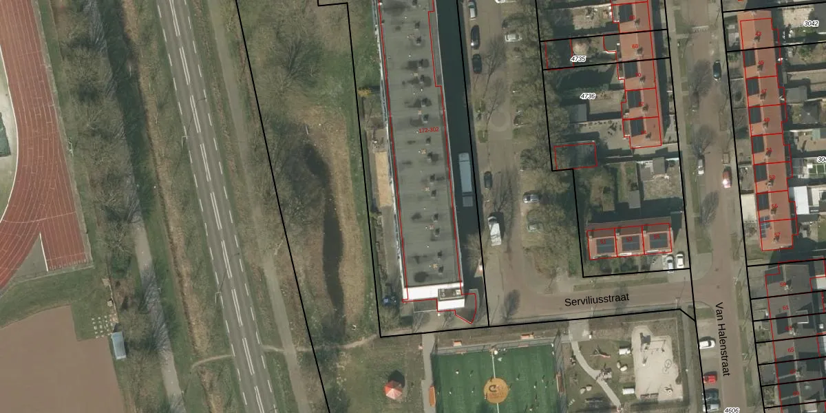 Het perceel waarop Serviliusstraat 280 staat heeft een oppervlakte van 4620 m². Dit is een zeer groot perceel. De perceeloppervlakte wordt geregistreerd door het Kadaster. Gedetailleerde informatie over de maten van dit perceel kunt u vinden in het rapport Kadastrale kaart met maatvoering van Serviliusstraat 280.