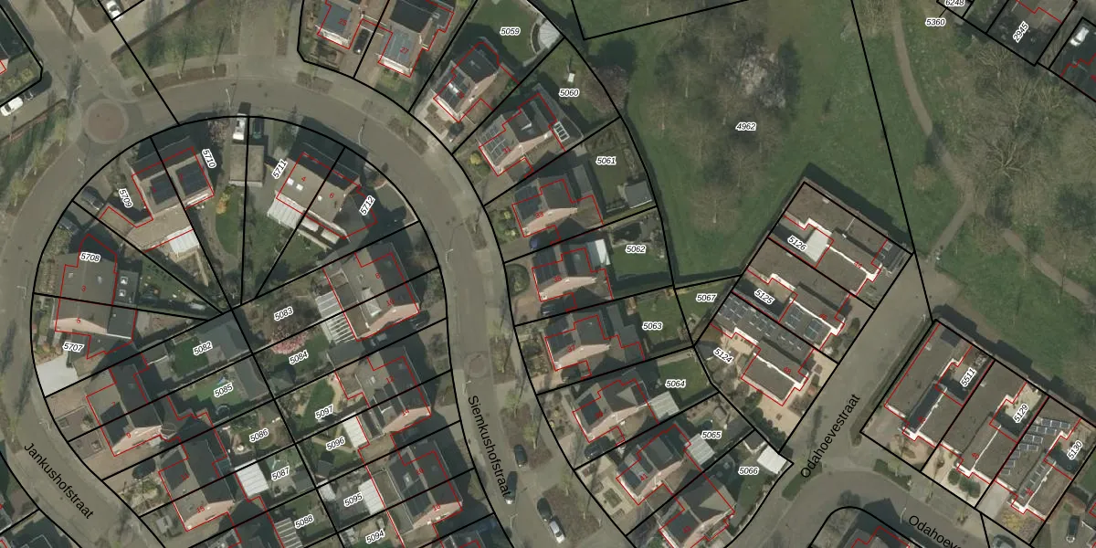 Het perceel waarop Siemkushofstraat 35 staat heeft een oppervlakte van 395 m². Dit is een groot perceel. De perceeloppervlakte wordt geregistreerd door het Kadaster. Gedetailleerde informatie over de maten van dit perceel kunt u vinden in het rapport Kadastrale kaart met maatvoering van Siemkushofstraat 35.