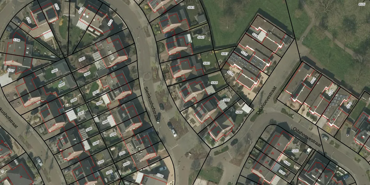 Het perceel waarop Siemkushofstraat 39 staat heeft een oppervlakte van 375 m². Dit is een groot perceel. De perceeloppervlakte wordt geregistreerd door het Kadaster. Gedetailleerde informatie over de maten van dit perceel kunt u vinden in het rapport Kadastrale kaart met maatvoering van Siemkushofstraat 39.
