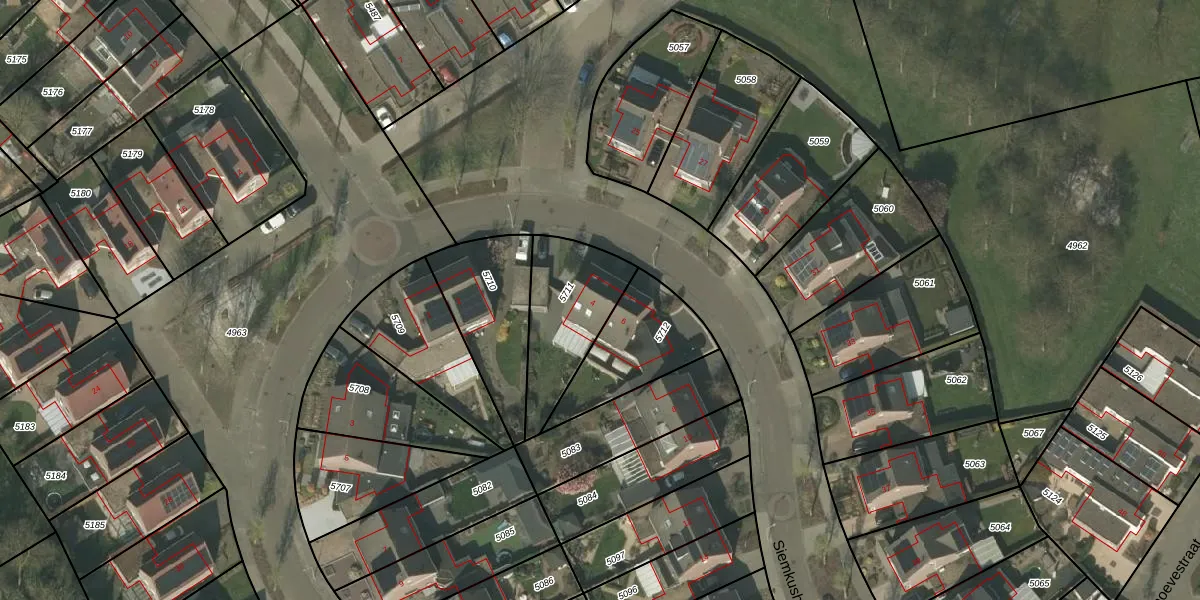 Het perceel waarop Siemkushofstraat 4 staat heeft een oppervlakte van 346 m². Dit is een groot perceel. De perceeloppervlakte wordt geregistreerd door het Kadaster. Gedetailleerde informatie over de maten van dit perceel kunt u vinden in het rapport Kadastrale kaart met maatvoering van Siemkushofstraat 4.