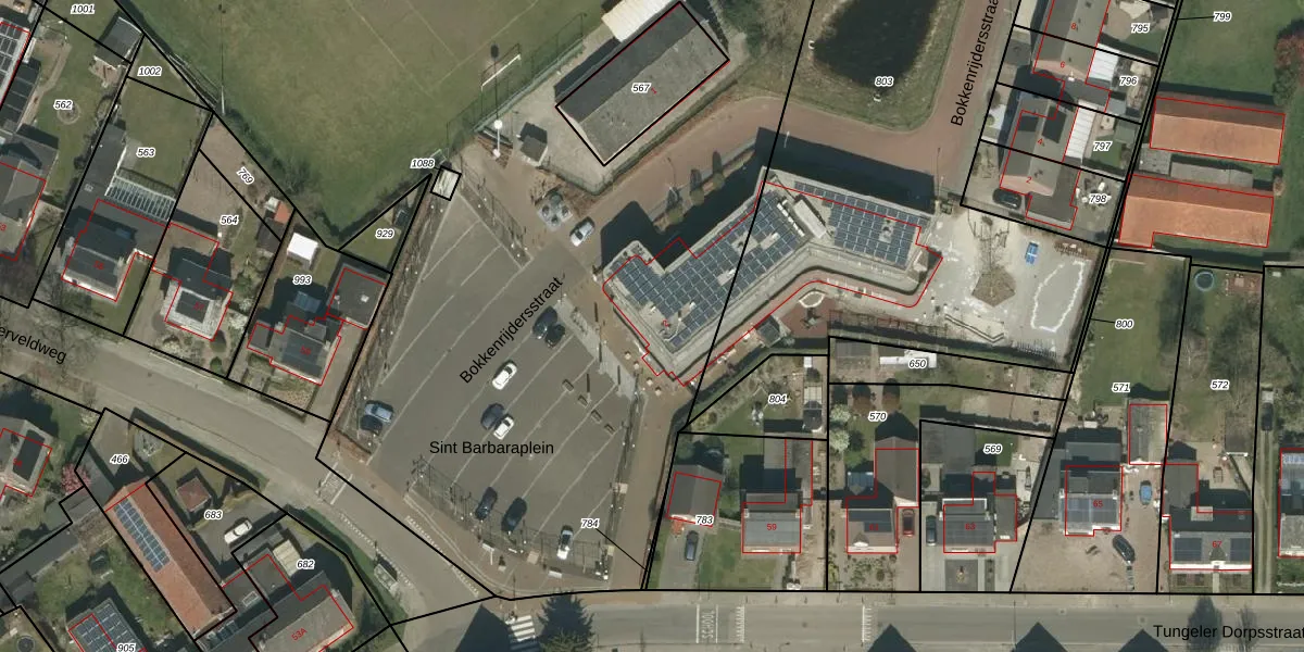 Het perceel waarop Sint Barbaraplein 2 staat heeft een oppervlakte van 2,2 ha. Dit is een zeer groot perceel. De perceeloppervlakte wordt geregistreerd door het Kadaster. Gedetailleerde informatie over de maten van dit perceel kunt u vinden in het rapport Kadastrale kaart met maatvoering van Sint Barbaraplein 2.
