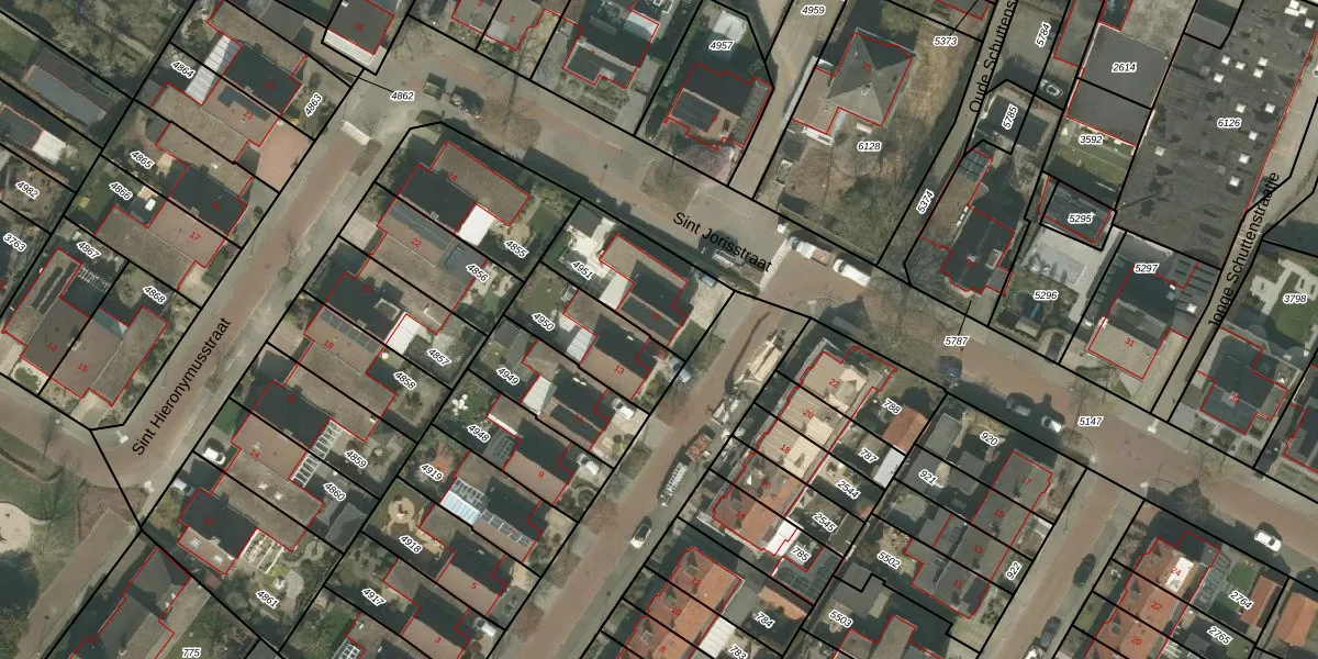 Het perceel waarop Sint Hubertusstraat 15 staat heeft een oppervlakte van 335 m². Dit is een groot perceel. De perceeloppervlakte wordt geregistreerd door het Kadaster. Gedetailleerde informatie over de maten van dit perceel kunt u vinden in het rapport Kadastrale kaart met maatvoering van Sint Hubertusstraat 15.