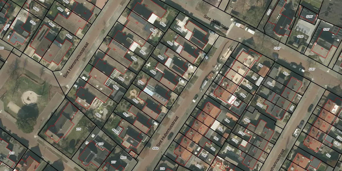 Het perceel waarop Sint Hubertusstraat 9 staat heeft een oppervlakte van 265 m². Dit is een middelgroot perceel. De perceeloppervlakte wordt geregistreerd door het Kadaster. Gedetailleerde informatie over de maten van dit perceel kunt u vinden in het rapport Kadastrale kaart met maatvoering van Sint Hubertusstraat 9.