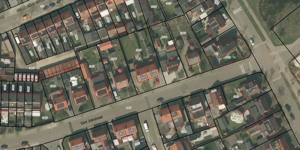 Het perceel waarop Sint Jobstraat 27 staat heeft een oppervlakte van 831 m². Dit is een groot perceel. De perceeloppervlakte wordt geregistreerd door het Kadaster. Gedetailleerde informatie over de maten van dit perceel kunt u vinden in het rapport Kadastrale kaart met maatvoering van Sint Jobstraat 27.