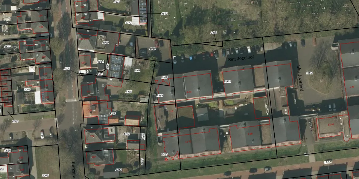 Het perceel waarop Sint Jozefhof 28 staat heeft een oppervlakte van 3588 m². Dit is een zeer groot perceel. De perceeloppervlakte wordt geregistreerd door het Kadaster. Gedetailleerde informatie over de maten van dit perceel kunt u vinden in het rapport Kadastrale kaart met maatvoering van Sint Jozefhof 28.