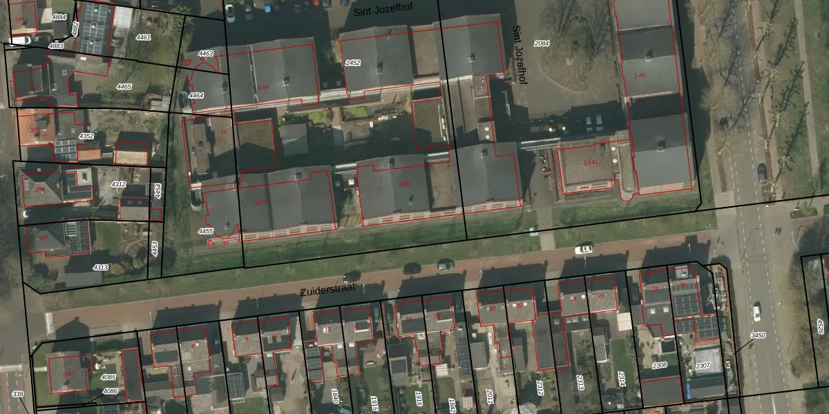 Het perceel waarop Sint Jozefhof 80 staat heeft een oppervlakte van 3588 m². Dit is een zeer groot perceel. De perceeloppervlakte wordt geregistreerd door het Kadaster. Gedetailleerde informatie over de maten van dit perceel kunt u vinden in het rapport Kadastrale kaart met maatvoering van Sint Jozefhof 80.