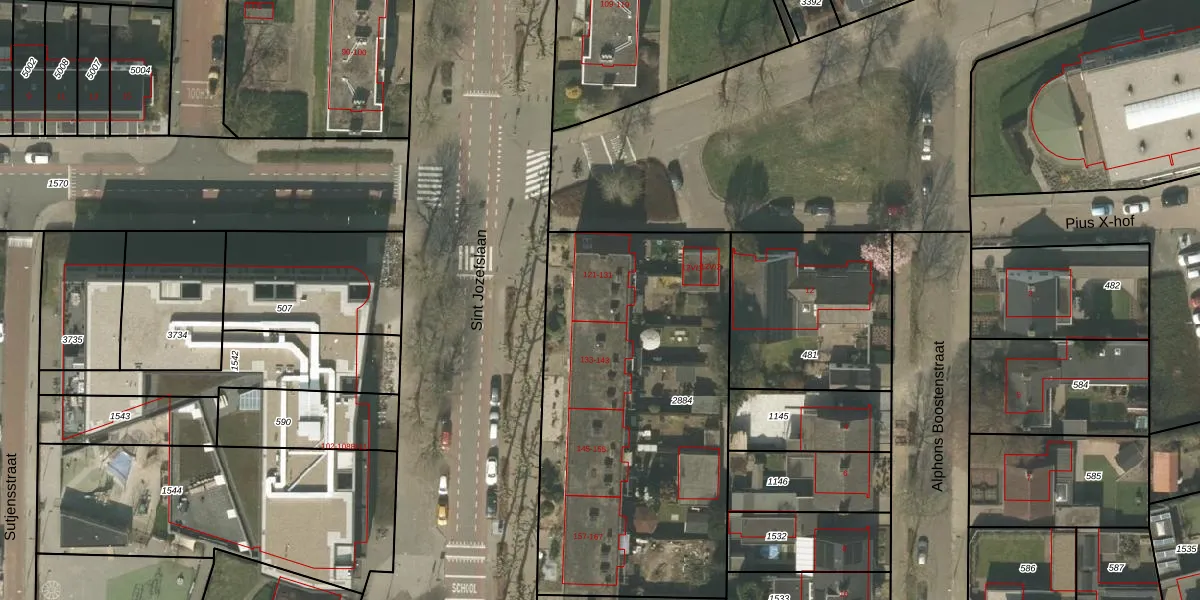 Het perceel waarop Sint Jozefslaan 129 staat heeft een oppervlakte van 1885 m². Dit is een zeer groot perceel. De perceeloppervlakte wordt geregistreerd door het Kadaster. Gedetailleerde informatie over de maten van dit perceel kunt u vinden in het rapport Kadastrale kaart met maatvoering van Sint Jozefslaan 129.