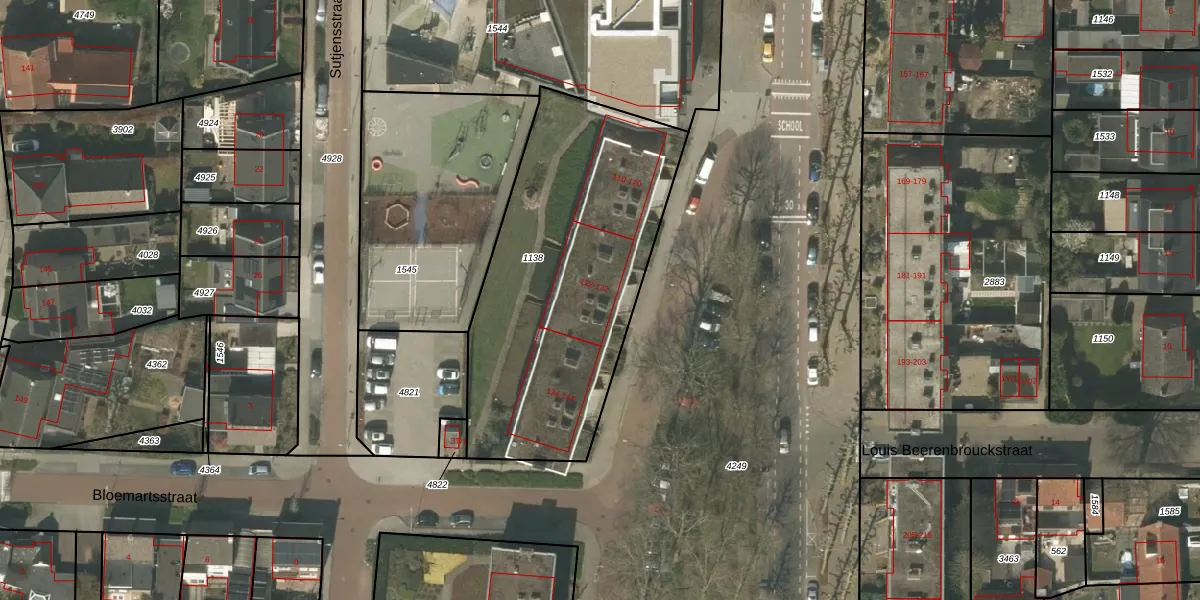 Het perceel waarop Sint Jozefslaan 132 staat heeft een oppervlakte van 1490 m². Dit is een zeer groot perceel. De perceeloppervlakte wordt geregistreerd door het Kadaster. Gedetailleerde informatie over de maten van dit perceel kunt u vinden in het rapport Kadastrale kaart met maatvoering van Sint Jozefslaan 132.