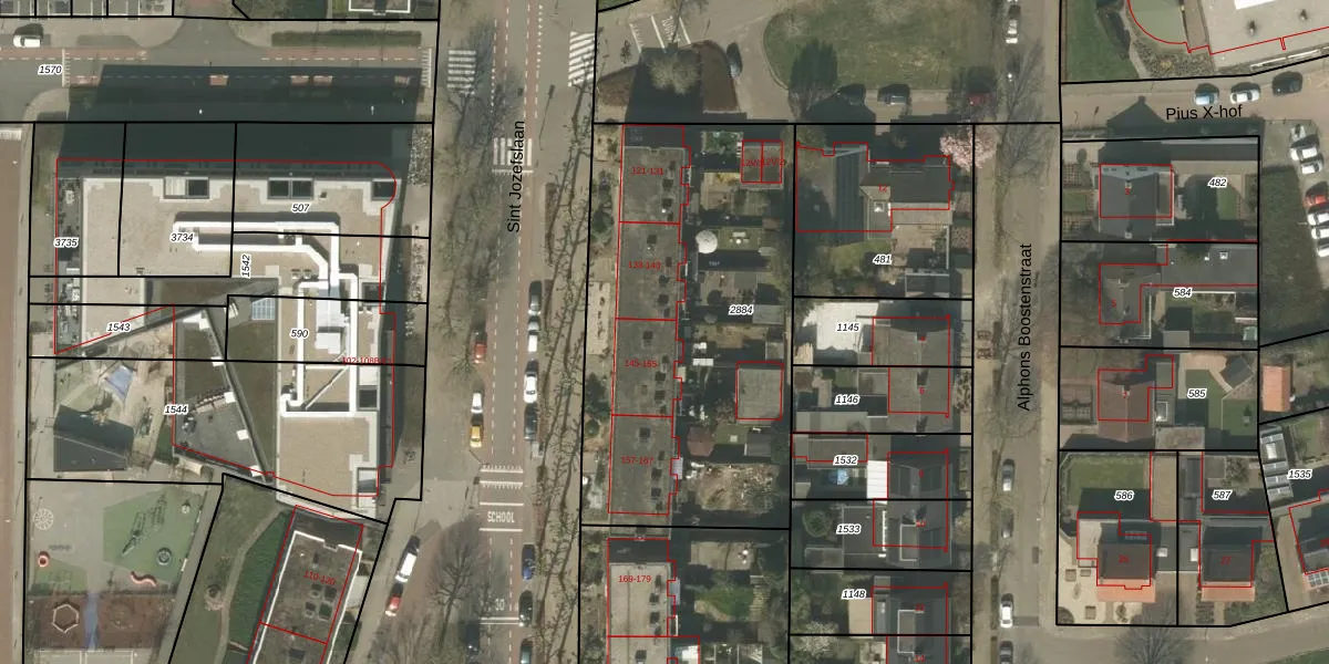 Het perceel waarop Sint Jozefslaan 149 staat heeft een oppervlakte van 1885 m². Dit is een zeer groot perceel. De perceeloppervlakte wordt geregistreerd door het Kadaster. Gedetailleerde informatie over de maten van dit perceel kunt u vinden in het rapport Kadastrale kaart met maatvoering van Sint Jozefslaan 149.