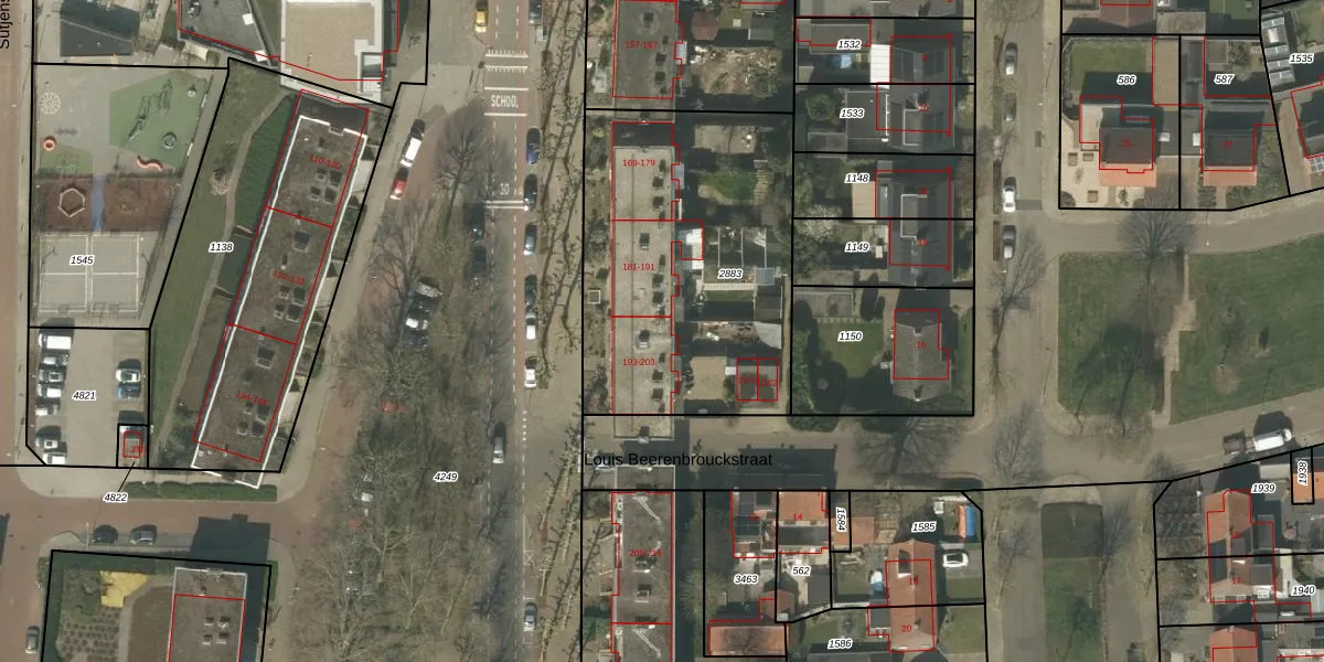 Het perceel waarop Sint Jozefslaan 197 staat heeft een oppervlakte van 1445 m². Dit is een zeer groot perceel. De perceeloppervlakte wordt geregistreerd door het Kadaster. Gedetailleerde informatie over de maten van dit perceel kunt u vinden in het rapport Kadastrale kaart met maatvoering van Sint Jozefslaan 197.