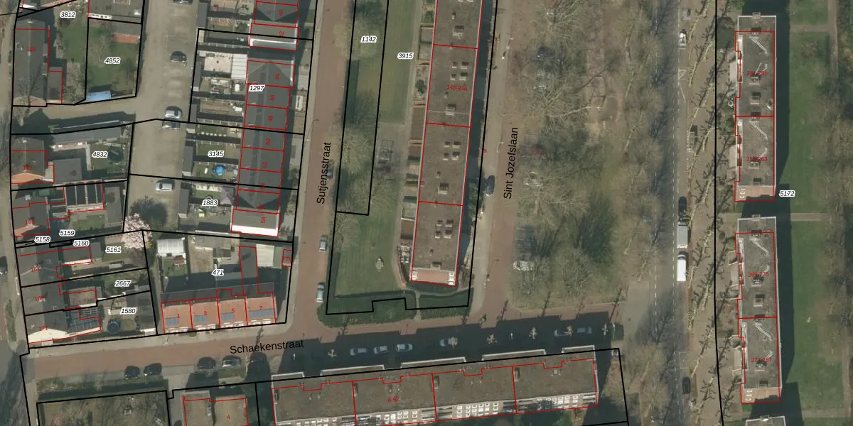 Het perceel waarop Sint Jozefslaan 214 staat heeft een oppervlakte van 3491 m². Dit is een zeer groot perceel. De perceeloppervlakte wordt geregistreerd door het Kadaster. Gedetailleerde informatie over de maten van dit perceel kunt u vinden in het rapport Kadastrale kaart met maatvoering van Sint Jozefslaan 214.