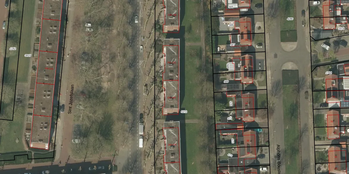 Het perceel waarop Sint Jozefslaan 263 staat heeft een oppervlakte van 6257 m². Dit is een zeer groot perceel. De perceeloppervlakte wordt geregistreerd door het Kadaster. Gedetailleerde informatie over de maten van dit perceel kunt u vinden in het rapport Kadastrale kaart met maatvoering van Sint Jozefslaan 263.