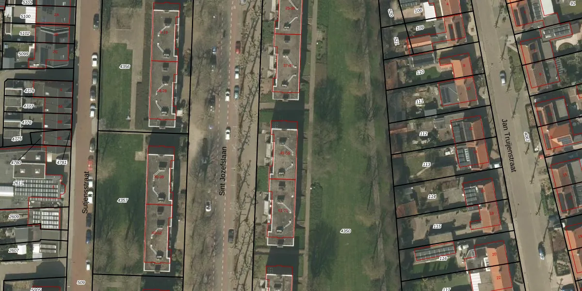 Sint Jozefslaan 55 is gelegen op kadastraal perceel WEE01R4350. Deze kadastrale aanduiding is uniek en wordt gebruikt door het Kadaster om eigendomsrechten en andere zakelijke rechten vast te leggen. Het perceel maakt onderdeel uit van de kadastrale gemeente Weert.