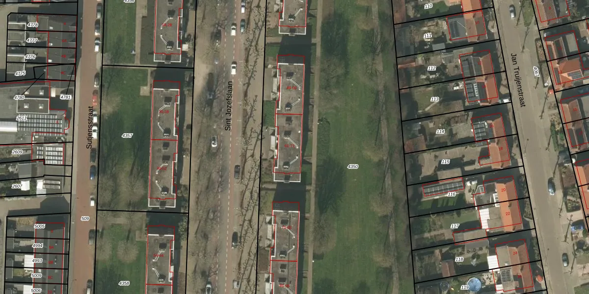 Sint Jozefslaan 67 is gelegen op kadastraal perceel WEE01R4350. Deze kadastrale aanduiding is uniek en wordt gebruikt door het Kadaster om eigendomsrechten en andere zakelijke rechten vast te leggen. Het perceel maakt onderdeel uit van de kadastrale gemeente Weert.