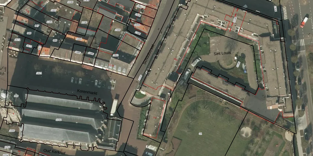 Het perceel waarop Sint Louis 106 staat heeft een oppervlakte van 4300 m². Dit is een zeer groot perceel. De perceeloppervlakte wordt geregistreerd door het Kadaster. Gedetailleerde informatie over de maten van dit perceel kunt u vinden in het rapport Kadastrale kaart met maatvoering van Sint Louis 106.
