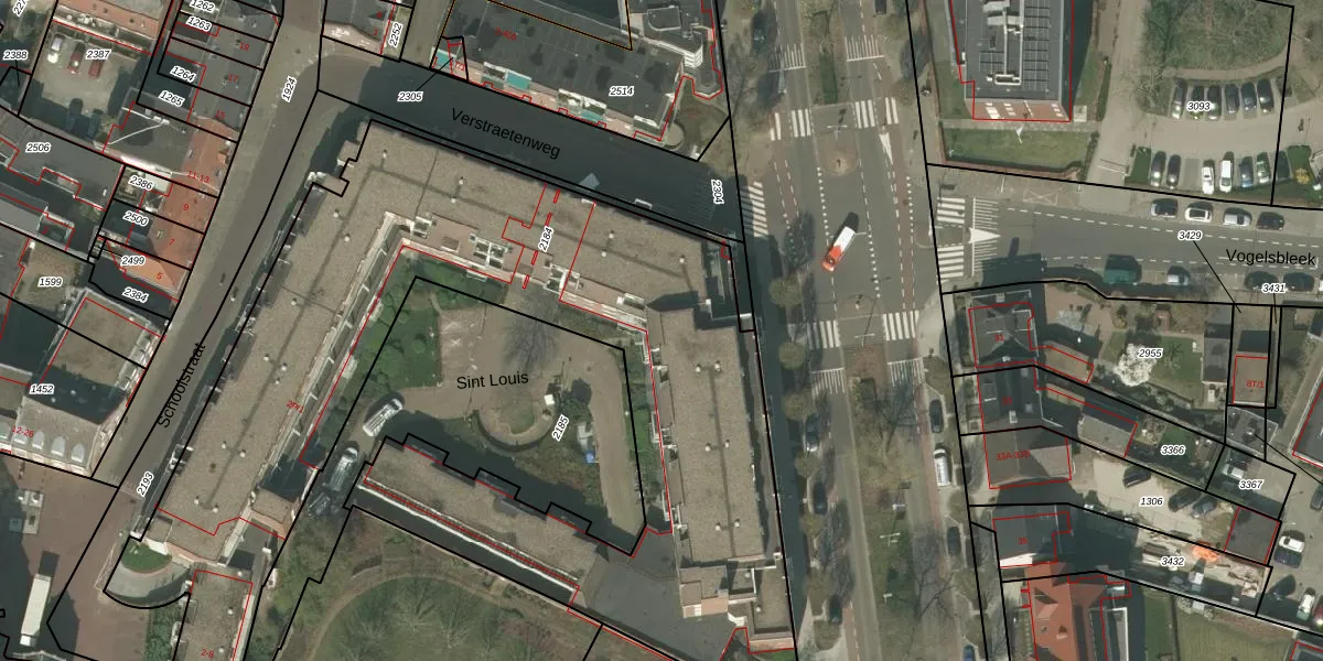Het perceel waarop Sint Louis 125 staat heeft een oppervlakte van 4300 m². Dit is een zeer groot perceel. De perceeloppervlakte wordt geregistreerd door het Kadaster. Gedetailleerde informatie over de maten van dit perceel kunt u vinden in het rapport Kadastrale kaart met maatvoering van Sint Louis 125.