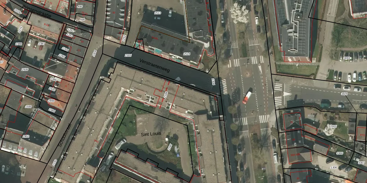 Het perceel waarop Sint Louis 13 staat heeft een oppervlakte van 4300 m². Dit is een zeer groot perceel. De perceeloppervlakte wordt geregistreerd door het Kadaster. Gedetailleerde informatie over de maten van dit perceel kunt u vinden in het rapport Kadastrale kaart met maatvoering van Sint Louis 13.