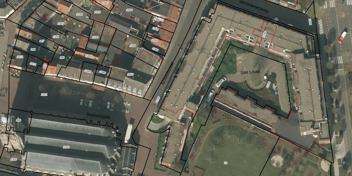 Sint Louis 20 is gelegen op kadastraal perceel WEE01O2184. Deze kadastrale aanduiding is uniek en wordt gebruikt door het Kadaster om eigendomsrechten en andere zakelijke rechten vast te leggen. Het perceel maakt onderdeel uit van de kadastrale gemeente Weert.