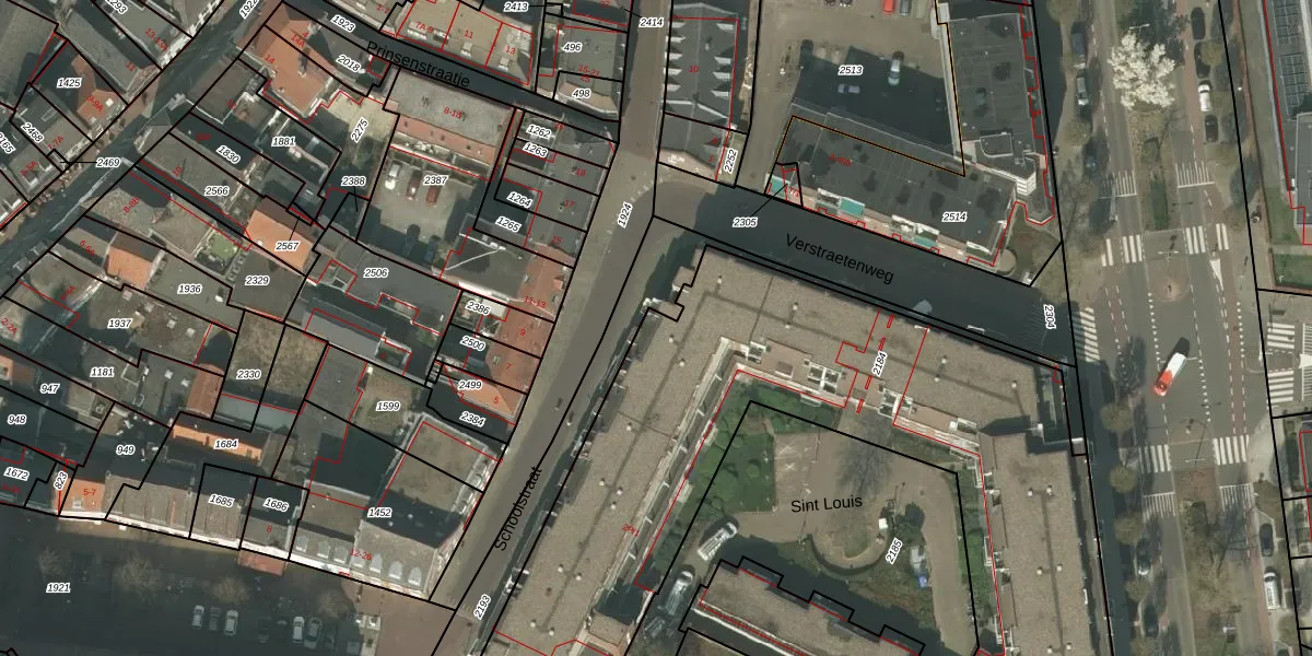Het perceel waarop Sint Louis 200 staat heeft een oppervlakte van 4300 m². Dit is een zeer groot perceel. De perceeloppervlakte wordt geregistreerd door het Kadaster. Gedetailleerde informatie over de maten van dit perceel kunt u vinden in het rapport Kadastrale kaart met maatvoering van Sint Louis 200.