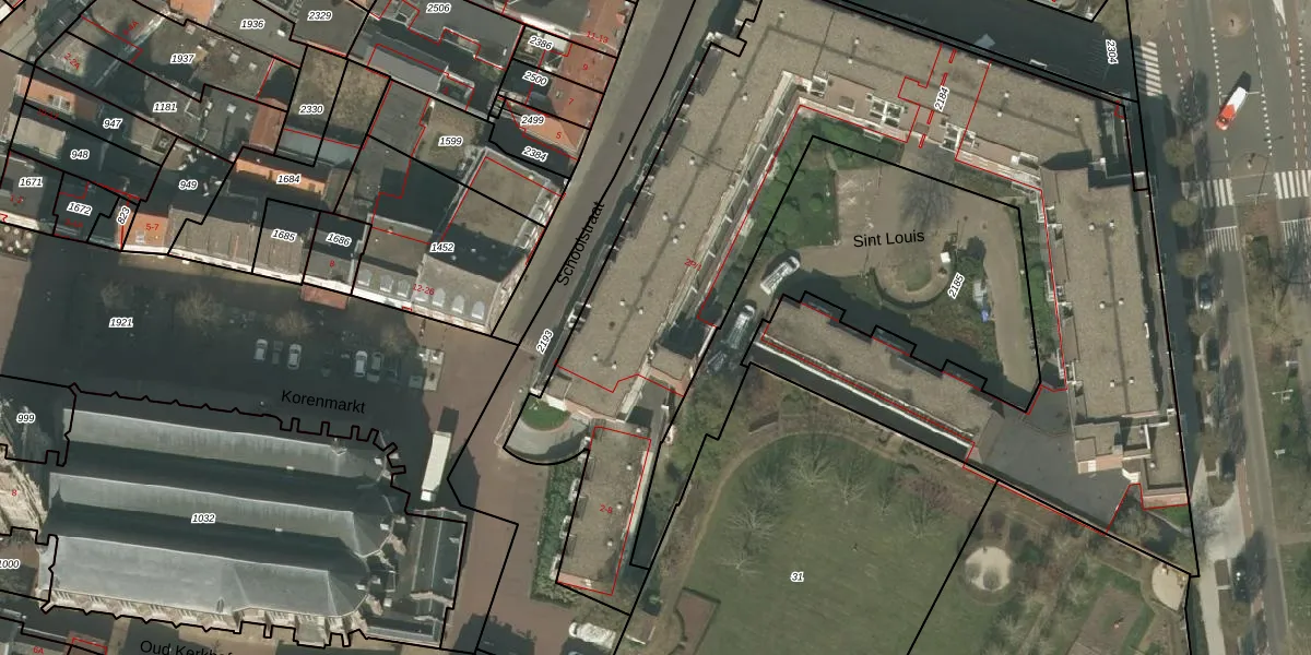 Het perceel waarop Sint Louis 28 staat heeft een oppervlakte van 4300 m². Dit is een zeer groot perceel. De perceeloppervlakte wordt geregistreerd door het Kadaster. Gedetailleerde informatie over de maten van dit perceel kunt u vinden in het rapport Kadastrale kaart met maatvoering van Sint Louis 28.