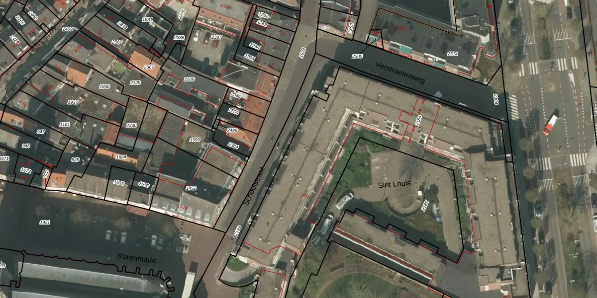 Het perceel waarop Sint Louis 300 staat heeft een oppervlakte van 4300 m². Dit is een zeer groot perceel. De perceeloppervlakte wordt geregistreerd door het Kadaster. Gedetailleerde informatie over de maten van dit perceel kunt u vinden in het rapport Kadastrale kaart met maatvoering van Sint Louis 300.