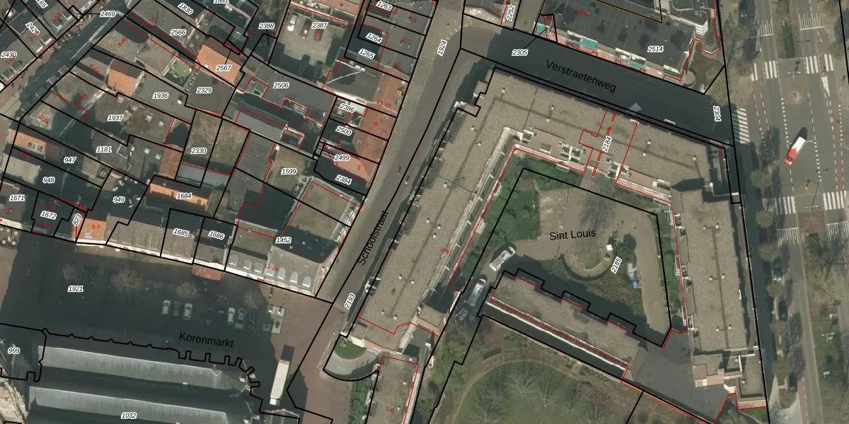 Het perceel waarop Sint Louis 314 staat heeft een oppervlakte van 4300 m². Dit is een zeer groot perceel. De perceeloppervlakte wordt geregistreerd door het Kadaster. Gedetailleerde informatie over de maten van dit perceel kunt u vinden in het rapport Kadastrale kaart met maatvoering van Sint Louis 314.