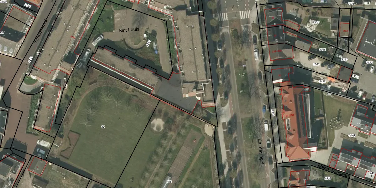 Het perceel waarop Sint Louis 315 staat heeft een oppervlakte van 4300 m². Dit is een zeer groot perceel. De perceeloppervlakte wordt geregistreerd door het Kadaster. Gedetailleerde informatie over de maten van dit perceel kunt u vinden in het rapport Kadastrale kaart met maatvoering van Sint Louis 315.