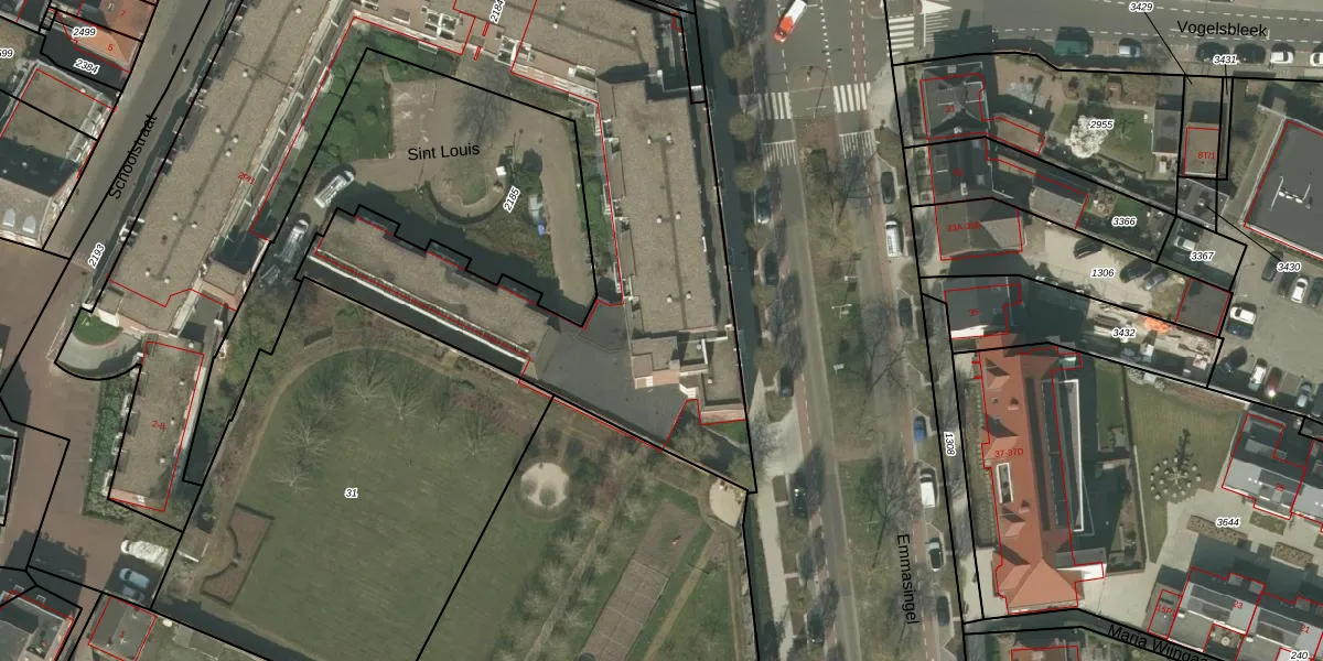 Het perceel waarop Sint Louis 401 staat heeft een oppervlakte van 4300 m². Dit is een zeer groot perceel. De perceeloppervlakte wordt geregistreerd door het Kadaster. Gedetailleerde informatie over de maten van dit perceel kunt u vinden in het rapport Kadastrale kaart met maatvoering van Sint Louis 401.