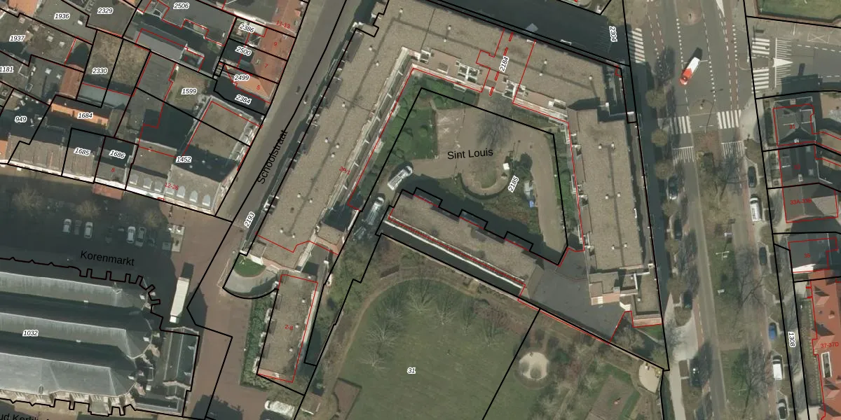 Het perceel waarop Sint Louis 5 staat heeft een oppervlakte van 4300 m². Dit is een zeer groot perceel. De perceeloppervlakte wordt geregistreerd door het Kadaster. Gedetailleerde informatie over de maten van dit perceel kunt u vinden in het rapport Kadastrale kaart met maatvoering van Sint Louis 5.