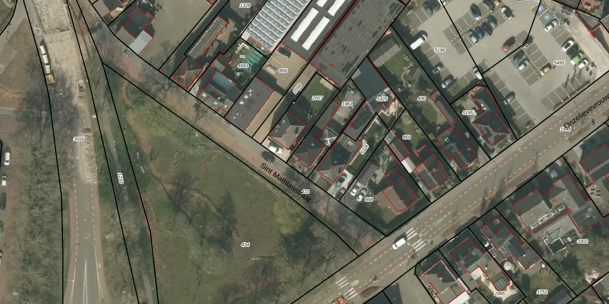 Het perceel waarop Sint Mathiasstraat 11 staat heeft een oppervlakte van 302 m². Dit is een groot perceel. De perceeloppervlakte wordt geregistreerd door het Kadaster. Gedetailleerde informatie over de maten van dit perceel kunt u vinden in het rapport Kadastrale kaart met maatvoering van Sint Mathiasstraat 11.