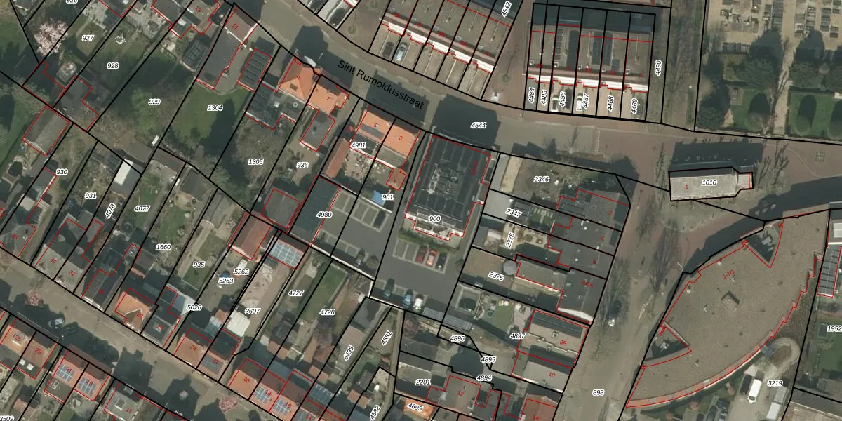 Het perceel waarop Sint Rumoldusstraat 1-K staat heeft een oppervlakte van 800 m². Dit is een groot perceel. De perceeloppervlakte wordt geregistreerd door het Kadaster. Gedetailleerde informatie over de maten van dit perceel kunt u vinden in het rapport Kadastrale kaart met maatvoering van Sint Rumoldusstraat 1-K.