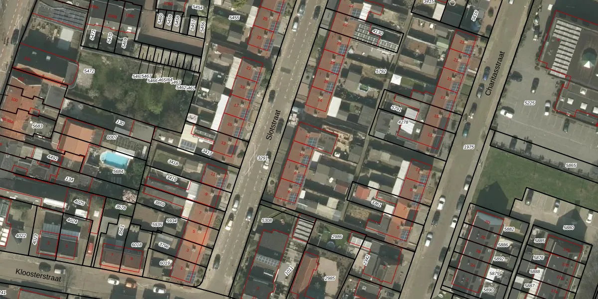 Het perceel waarop Slotstraat 10 staat heeft een oppervlakte van 3788 m². Dit is een zeer groot perceel. De perceeloppervlakte wordt geregistreerd door het Kadaster. Gedetailleerde informatie over de maten van dit perceel kunt u vinden in het rapport Kadastrale kaart met maatvoering van Slotstraat 10.
