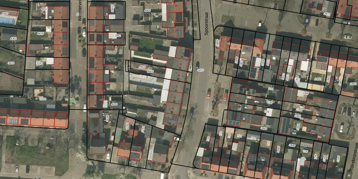 Het perceel waarop Spoorstraat 40 staat heeft een oppervlakte van 6635 m². Dit is een zeer groot perceel. De perceeloppervlakte wordt geregistreerd door het Kadaster. Gedetailleerde informatie over de maten van dit perceel kunt u vinden in het rapport Kadastrale kaart met maatvoering van Spoorstraat 40.