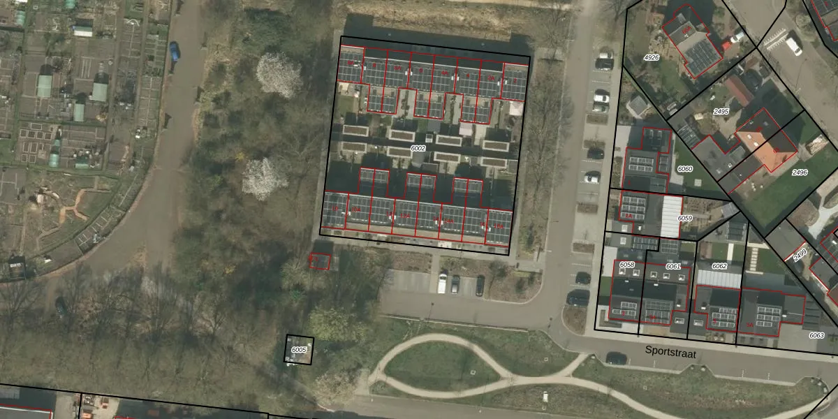 Sportstraat 14 is gelegen op kadastraal perceel WEE01S6002. Deze kadastrale aanduiding is uniek en wordt gebruikt door het Kadaster om eigendomsrechten en andere zakelijke rechten vast te leggen. Het perceel maakt onderdeel uit van de kadastrale gemeente Weert.