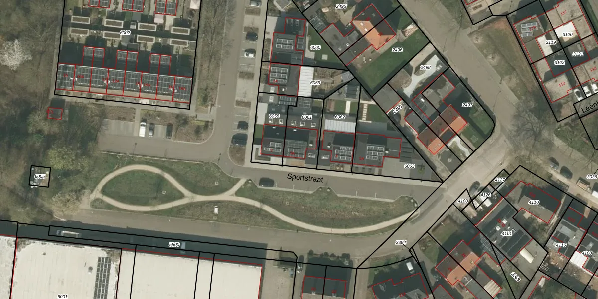 Sportstraat 3-A is gelegen op kadastraal perceel WEE01S6061. Deze kadastrale aanduiding is uniek en wordt gebruikt door het Kadaster om eigendomsrechten en andere zakelijke rechten vast te leggen. Het perceel maakt onderdeel uit van de kadastrale gemeente Weert.