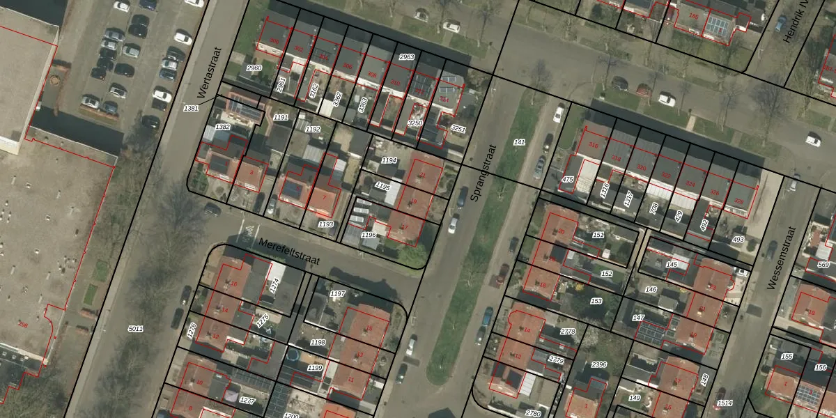 Sprangstraat 19 is gelegen op kadastraal perceel WEE01S1195. Deze kadastrale aanduiding is uniek en wordt gebruikt door het Kadaster om eigendomsrechten en andere zakelijke rechten vast te leggen. Het perceel maakt onderdeel uit van de kadastrale gemeente Weert.