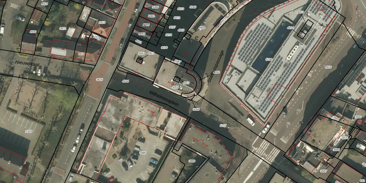 Het perceel waarop Stadhuispassage 122 staat heeft een oppervlakte van 284 m². Dit is een middelgroot perceel. De perceeloppervlakte wordt geregistreerd door het Kadaster. Gedetailleerde informatie over de maten van dit perceel kunt u vinden in het rapport Kadastrale kaart met maatvoering van Stadhuispassage 122.