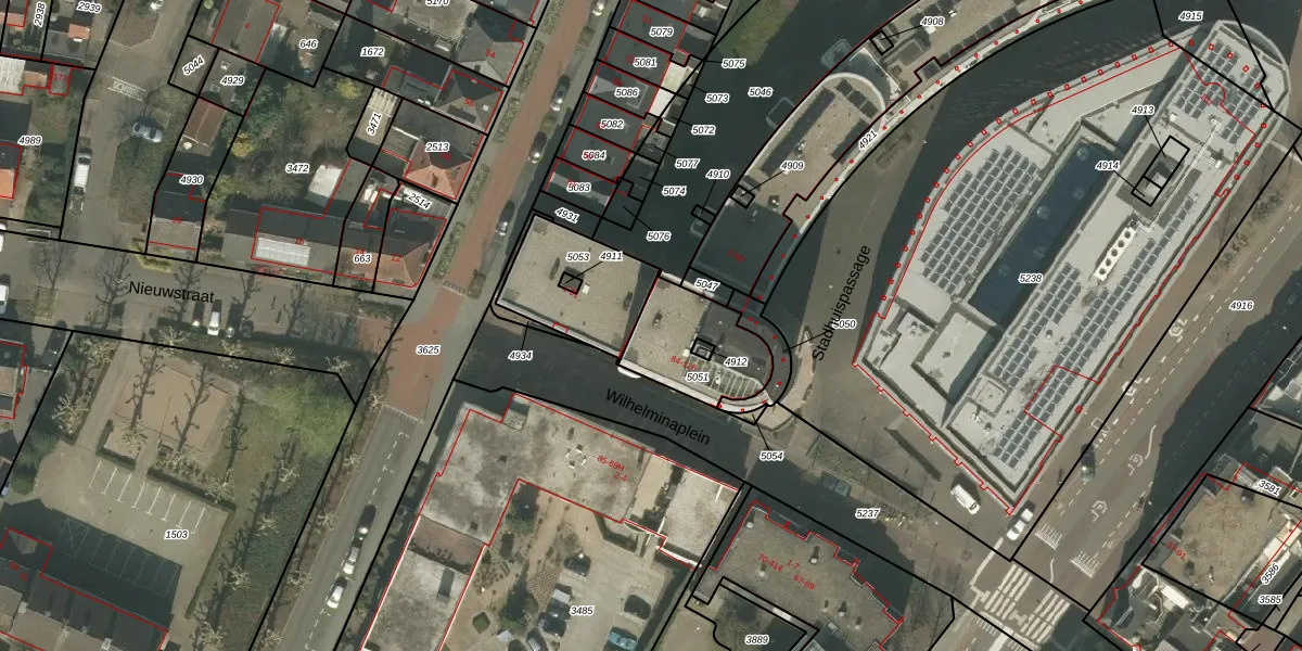 Het perceel waarop Stadhuispassage 126 staat heeft een oppervlakte van 284 m². Dit is een middelgroot perceel. De perceeloppervlakte wordt geregistreerd door het Kadaster. Gedetailleerde informatie over de maten van dit perceel kunt u vinden in het rapport Kadastrale kaart met maatvoering van Stadhuispassage 126.