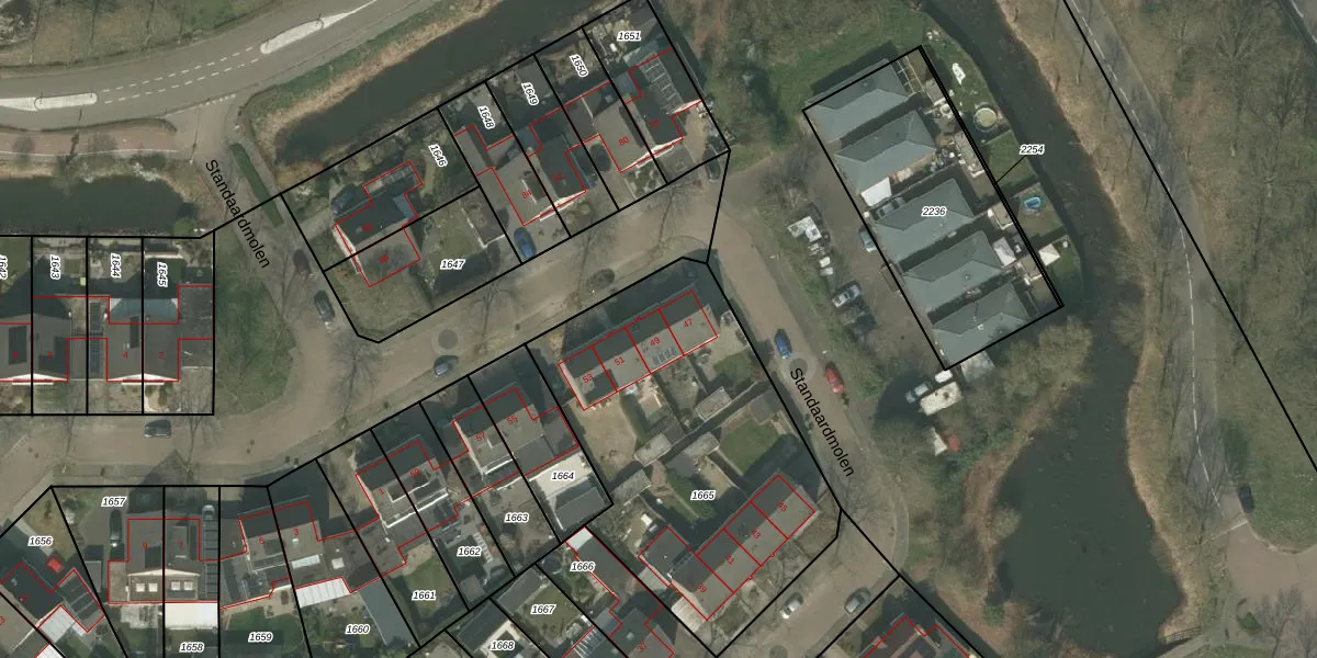 Het perceel waarop Standaardmolen 49 staat heeft een oppervlakte van 1589 m². Dit is een zeer groot perceel. De perceeloppervlakte wordt geregistreerd door het Kadaster. Gedetailleerde informatie over de maten van dit perceel kunt u vinden in het rapport Kadastrale kaart met maatvoering van Standaardmolen 49.