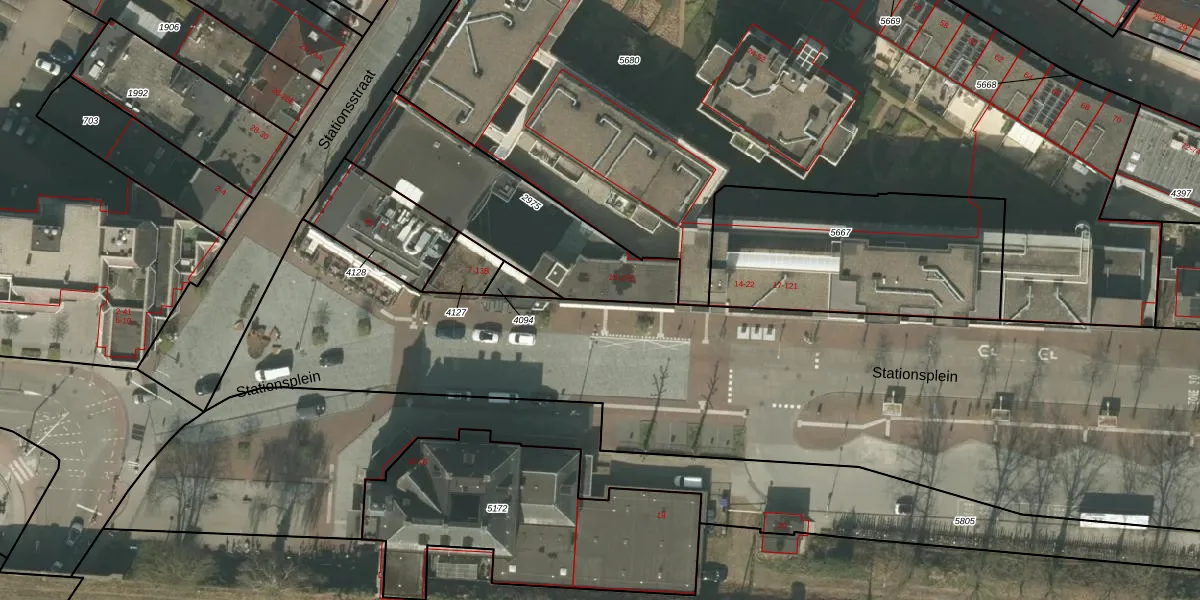 Het perceel waarop Stationsplein 15 staat heeft een oppervlakte van 691 m². Dit is een groot perceel. De perceeloppervlakte wordt geregistreerd door het Kadaster. Gedetailleerde informatie over de maten van dit perceel kunt u vinden in het rapport Kadastrale kaart met maatvoering van Stationsplein 15.