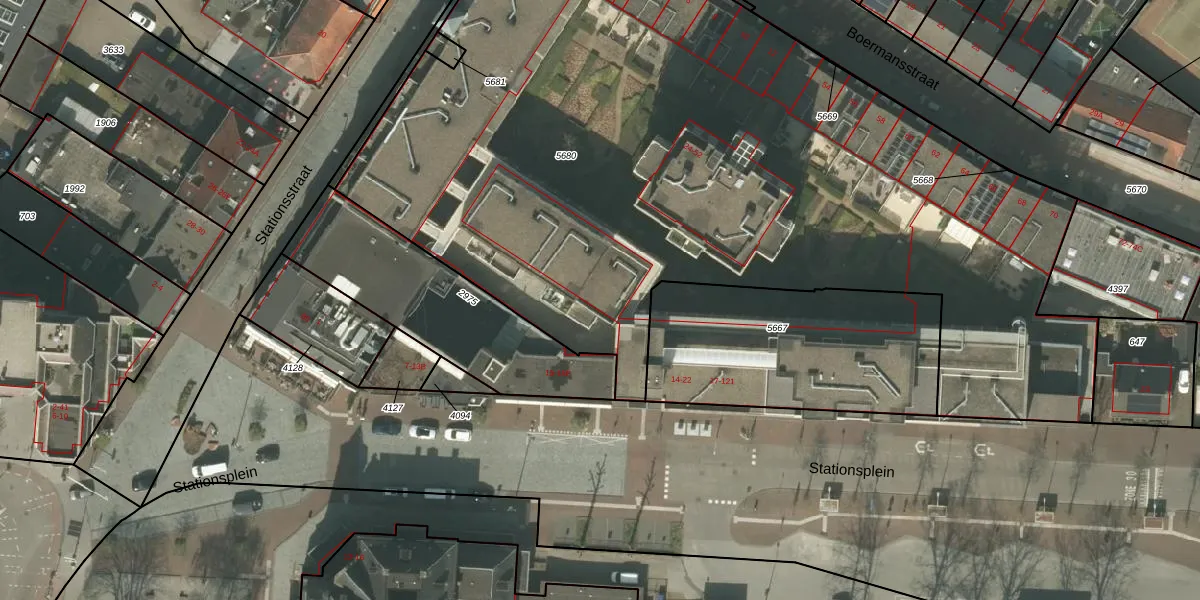 Het perceel waarop Stationsplein 37 staat heeft een oppervlakte van 5596 m². Dit is een zeer groot perceel. De perceeloppervlakte wordt geregistreerd door het Kadaster. Gedetailleerde informatie over de maten van dit perceel kunt u vinden in het rapport Kadastrale kaart met maatvoering van Stationsplein 37.